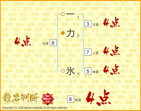 一力氷さんの総運は8画の4点!