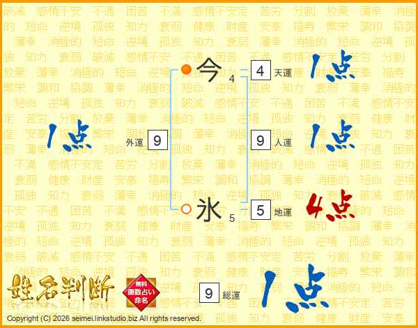 今氷さんの総運は9画の1点!