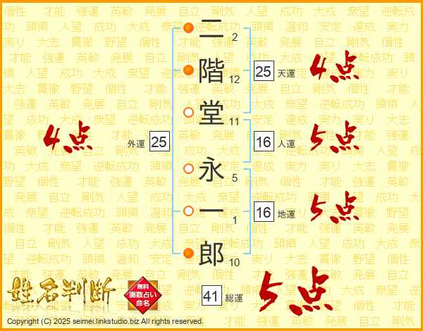 二(2画)階(12画)堂(11画) 永(5画)一(1画)郎(10画)