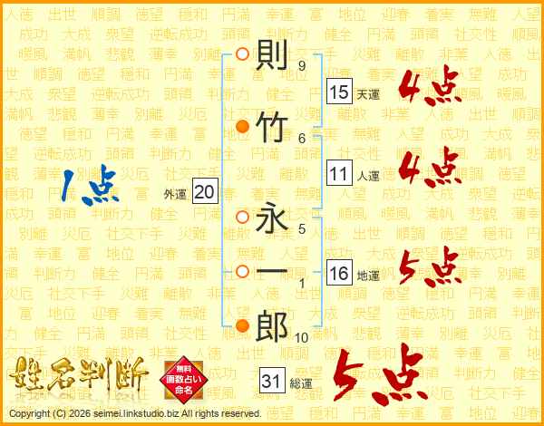 則(9画)竹(6画) 永(5画)一(1画)郎(10画)