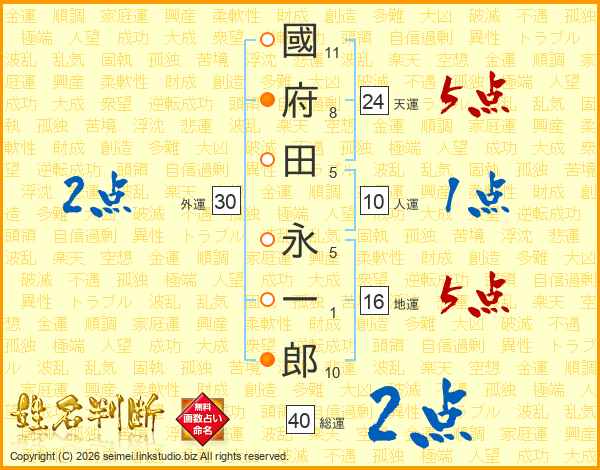 國府田永一郎さんの天運は24画の5点!