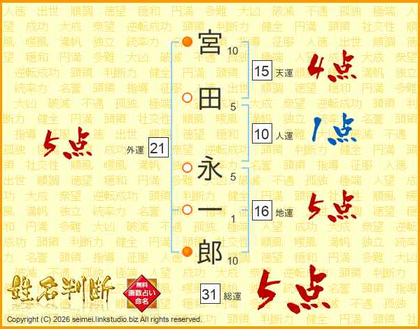 宮田永一郎さんの総運は31画の5点!