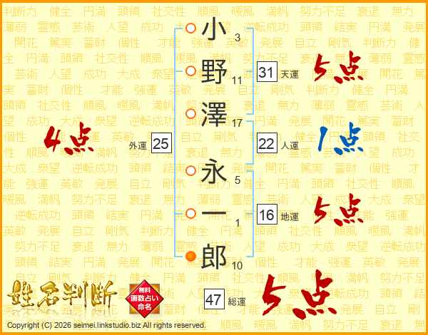 小野澤永一郎さんの天運は31画の5点!