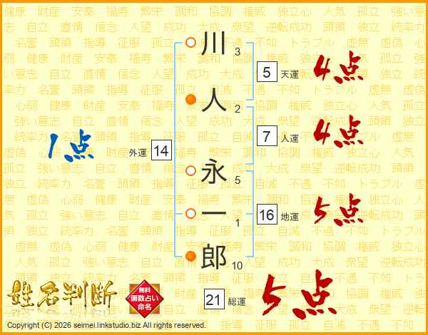 川(3画)人(2画) 永(5画)一(1画)郎(10画)