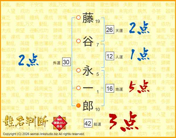 藤谷永一郎さんの天運は26画の2点!