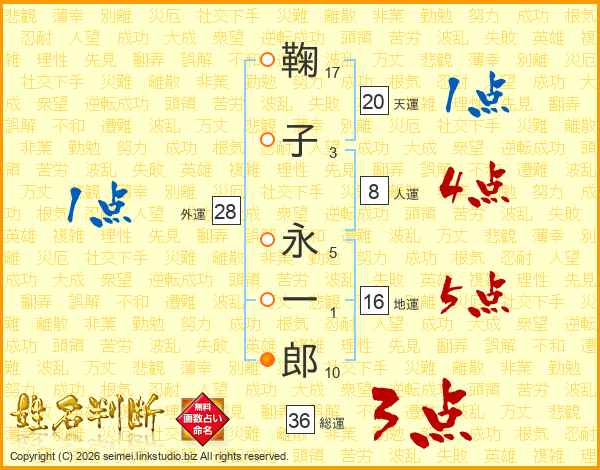 鞠(17画)子(3画) 永(5画)一(1画)郎(10画)