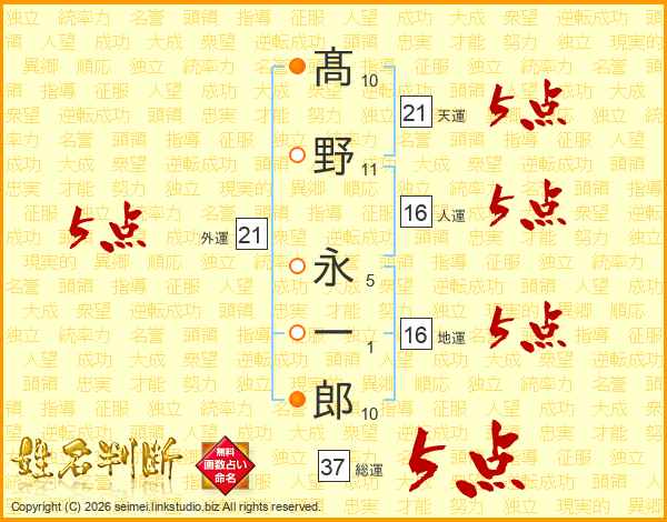 髙(10画)野(11画) 永(5画)一(1画)郎(10画)