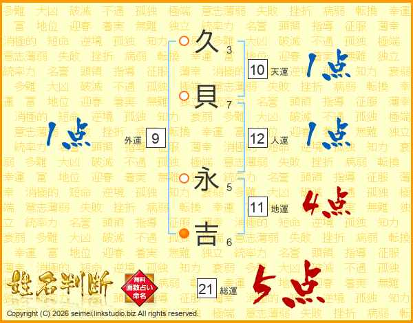 久貝永吉さんの総運は21画の5点!