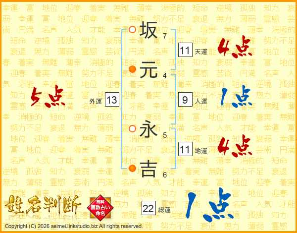 坂元永吉さんの天運は11画の4点!