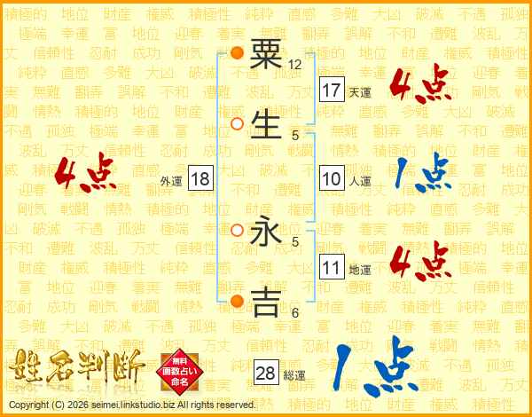 粟生永吉さんの天運は17画の4点!