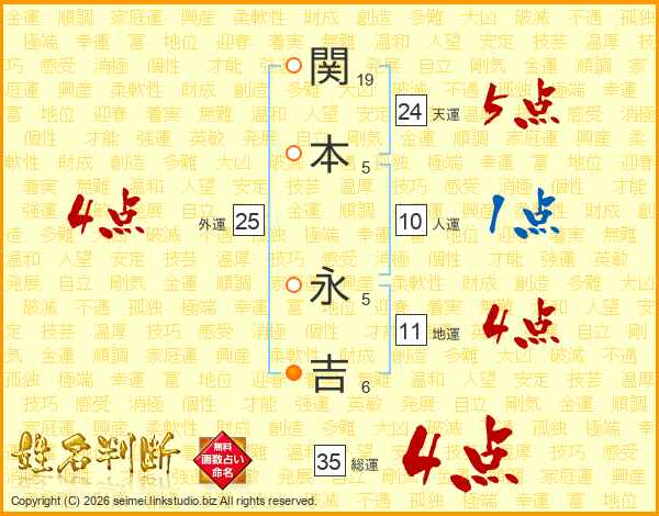 関本永吉さんの天運は24画の5点!