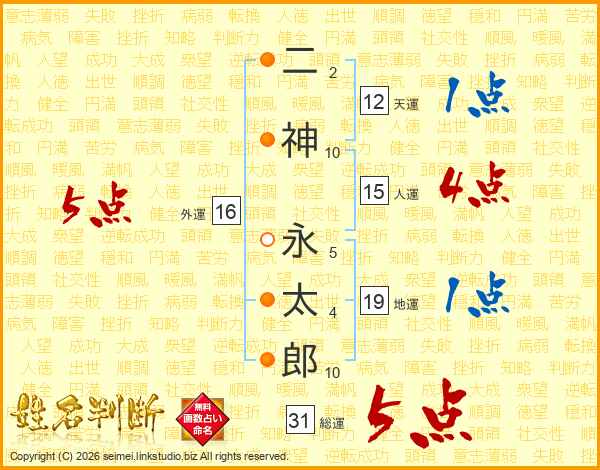 二神永太郎さんの総運は31画の5点!
