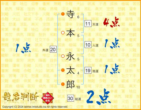 寺本永太郎さんの天運は11画の4点!