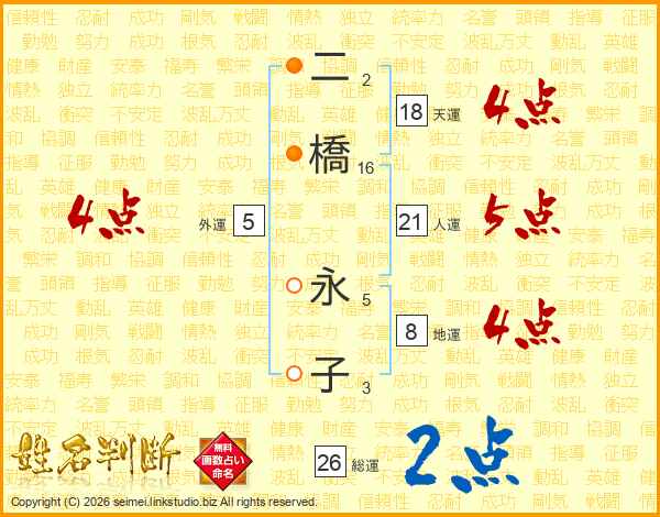 二橋永子さんの総運は26画の2点!