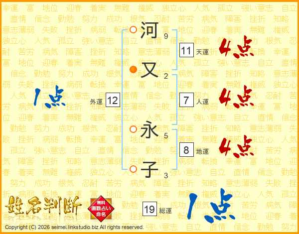 河又永子さんの天運は11画の4点!