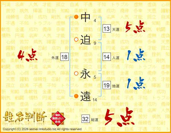 中迫永遠さんの総運は32画の5点!