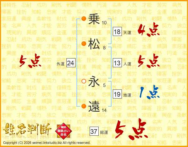 乗松永遠さんの総運は37画の5点!
