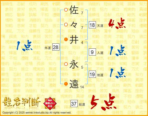 佐(7画)々(7画)井(4画) 永(5画)遠(14画)