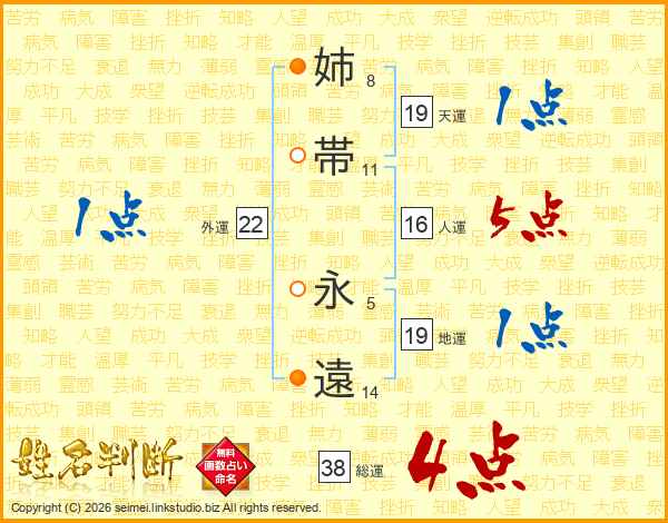姉(8画)帯(11画) 永(5画)遠(14画)