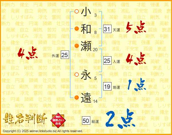小(3画)和(8画)瀬(20画) 永(5画)遠(14画)