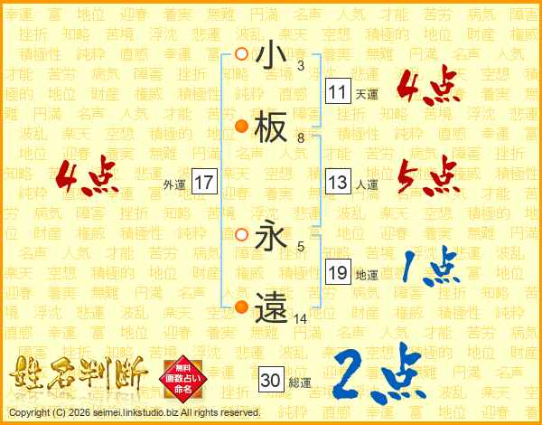 小板永遠さんの天運は11画の4点!