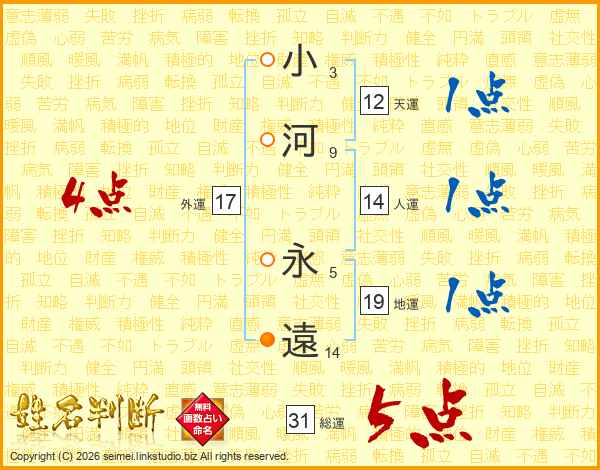小河永遠さんの総運は31画の5点!