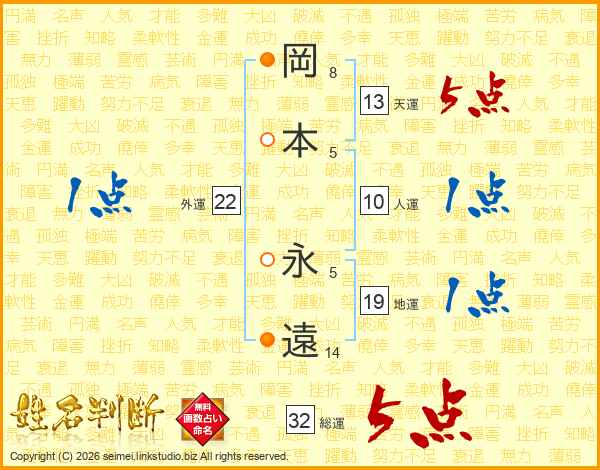 岡本永遠さんの総運は32画の5点!