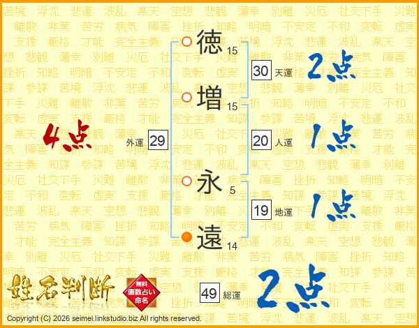 徳(15画)増(15画) 永(5画)遠(14画)