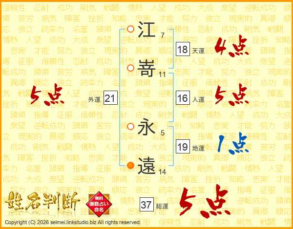 江(7画)嵜(11画) 永(5画)遠(14画)