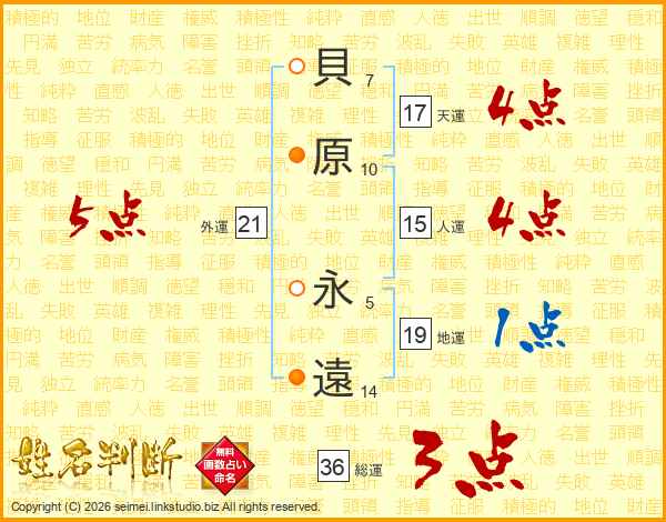 貝(7画)原(10画) 永(5画)遠(14画)
