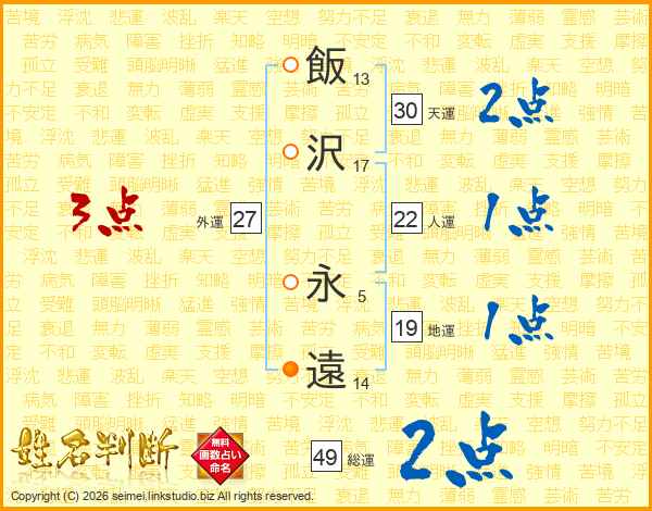 飯沢永遠さんの総運は49画の2点!