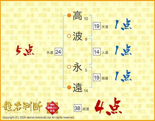 高波永遠さんの総運は38画の4点!
