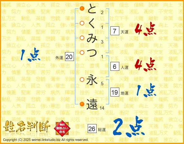 と(2画)く(1画)み(3画)つ(1画) 永(5画)遠(14画)