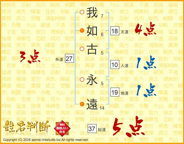 我如古永遠さんの天運は18画の4点!