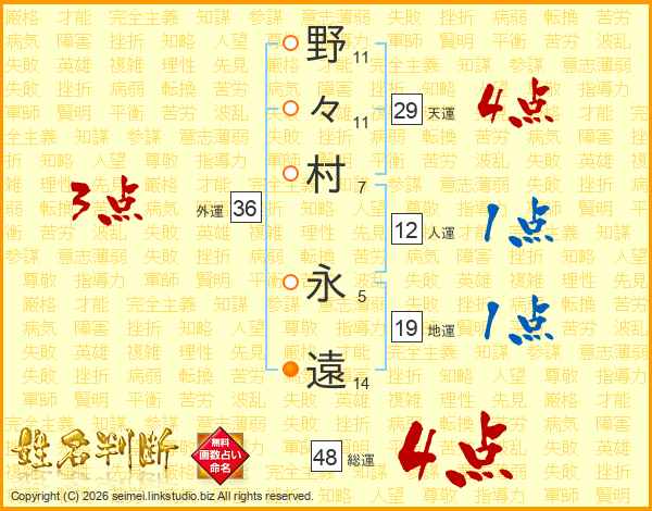 野々村永遠さんの総運は48画の4点!