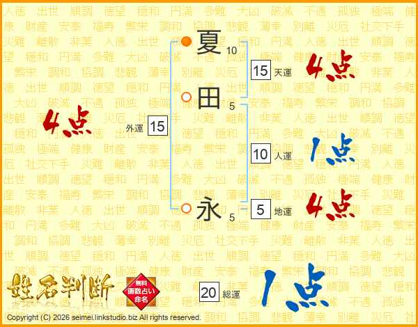 夏田永さんの天運は15画の4点!