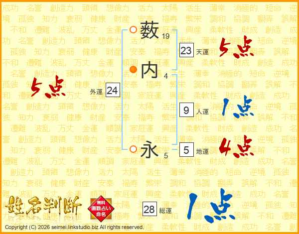 薮内永さんの天運は23画の5点!
