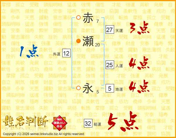 赤瀬永さんの総運は32画の5点!
