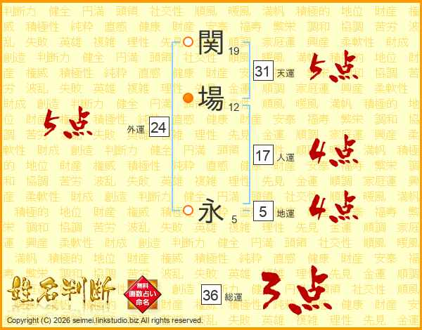 関場永さんの天運は31画の5点!