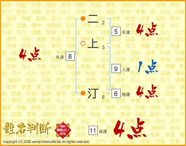二上汀さんの総運は11画の4点!