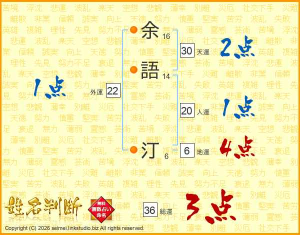 余語汀さんの天運は30画の2点!