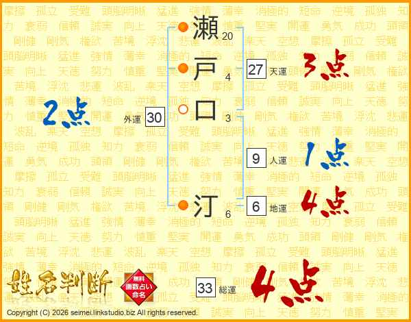 瀬戸口汀さんの総運は33画の4点!