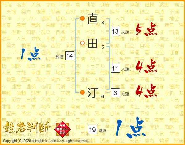 直田汀さんの天運は13画の5点!