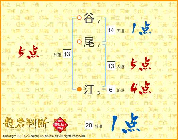谷尾汀さんの人運は13画の5点!