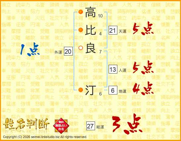 高比良汀さんの総運は27画の3点!