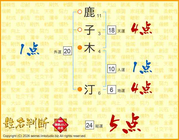 鹿(11画)子(3画)木(4画) 汀(6画)