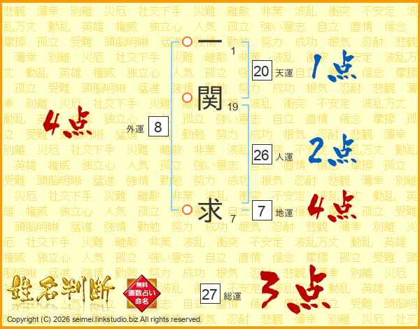 一関求さんの人運は26画の2点!