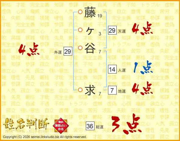 藤(19画)ヶ(3画)谷(7画) 求(7画)