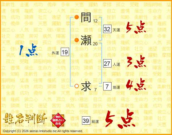 間瀬求さんの総運は39画の5点!