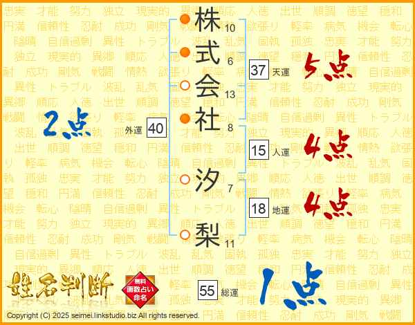 株(10画)式(6画)会(13画)社(8画) 汐(7画)梨(11画)